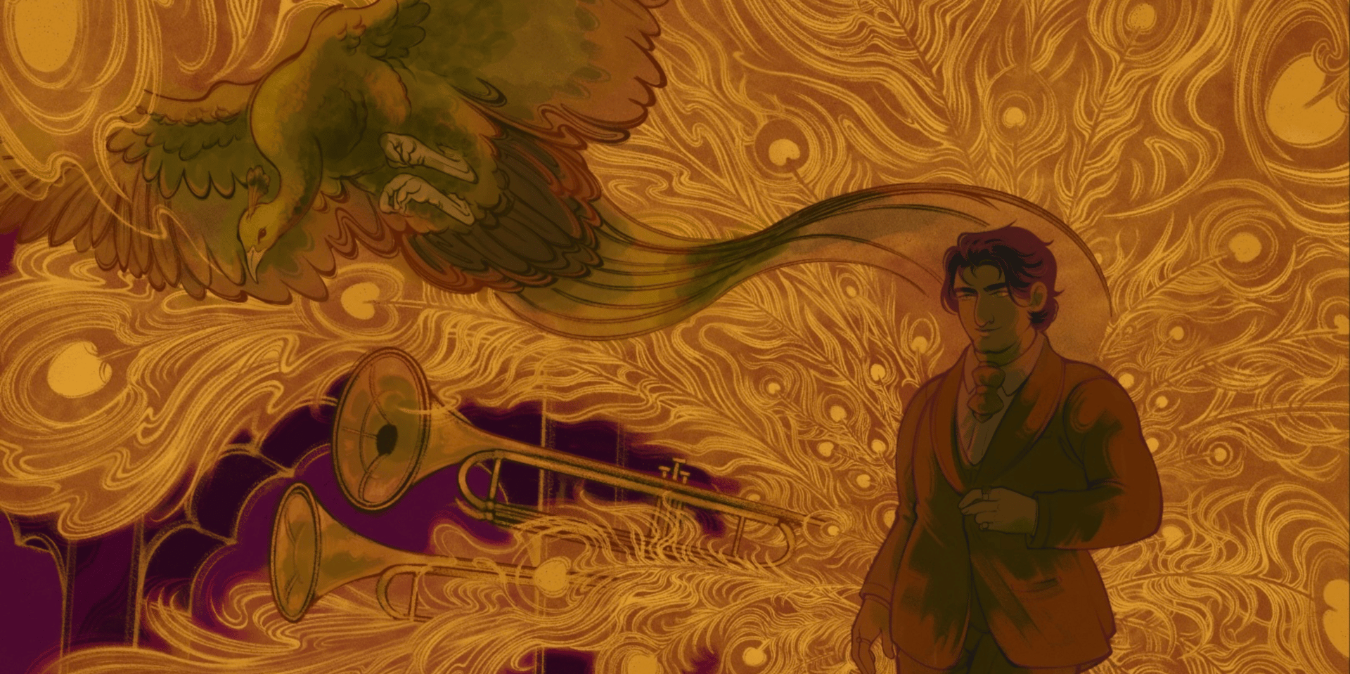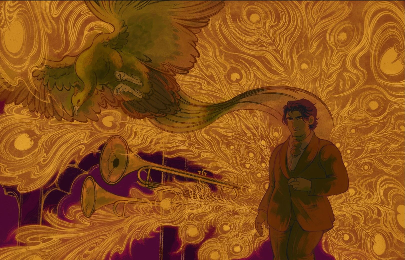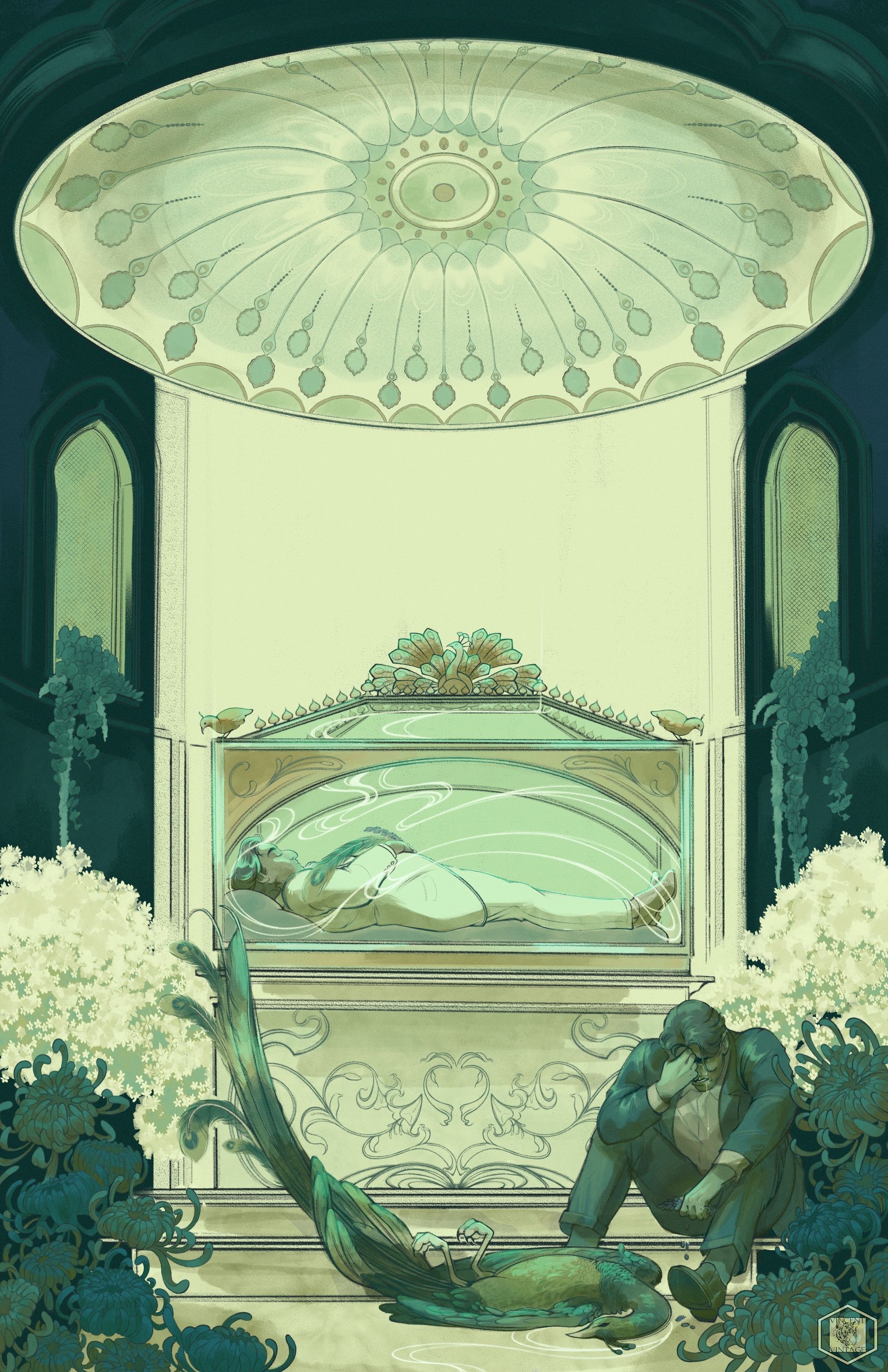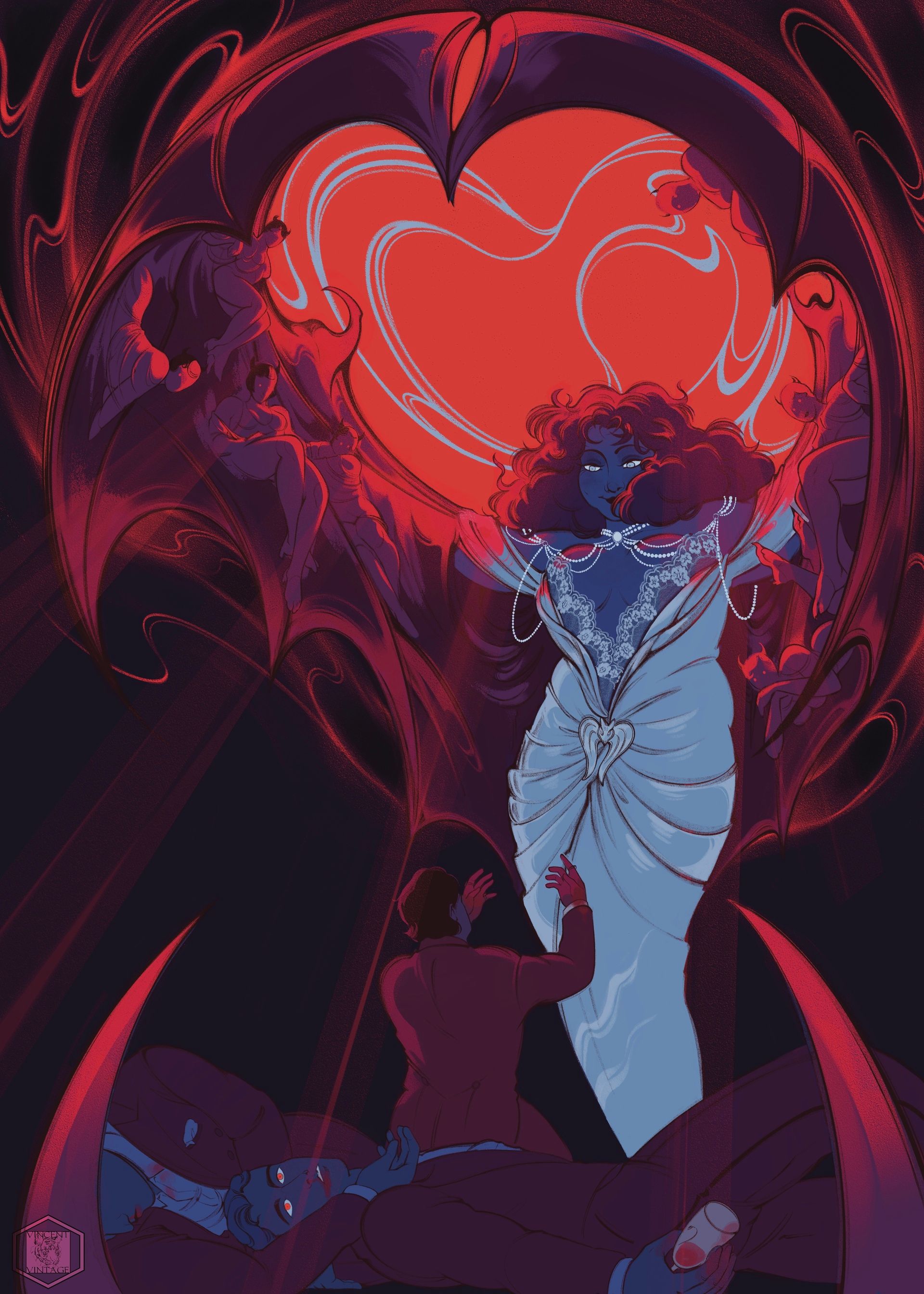 I went with the concept of Gatsby offering the souls of unsuspecting party guests to the queen vamp Daisy. Some haunting devotion called “Tributes to Her”